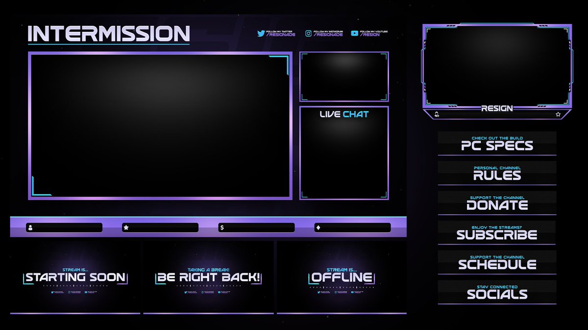For this stream package designed for Resign, I pursued a modern, tech-forward aesthetic that sits at the intersection of gaming culture and futuristic design. A deep blue and purple palette was chosen to reinforce the high-tech direction, with each element crafted to feel sharp, intentional, and cohesive across the full package. HD: https://x.com/Frxstify/status/1269690650158456834/photo/1